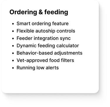 When managing food supplies, busy pet owners want to stay ahead of reorders and avoid waste so they can reduce cognitive load and ensure their pets are never left without food.