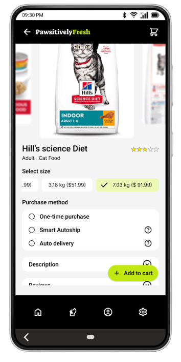 In addition to offering one-time purchases, this app also provides a convenient subscription-based delivery service. Users can choose from fixed schedules or customize delivery according to their pet's specific needs, taking into account factors such as age, gender, breed, and health conditions.