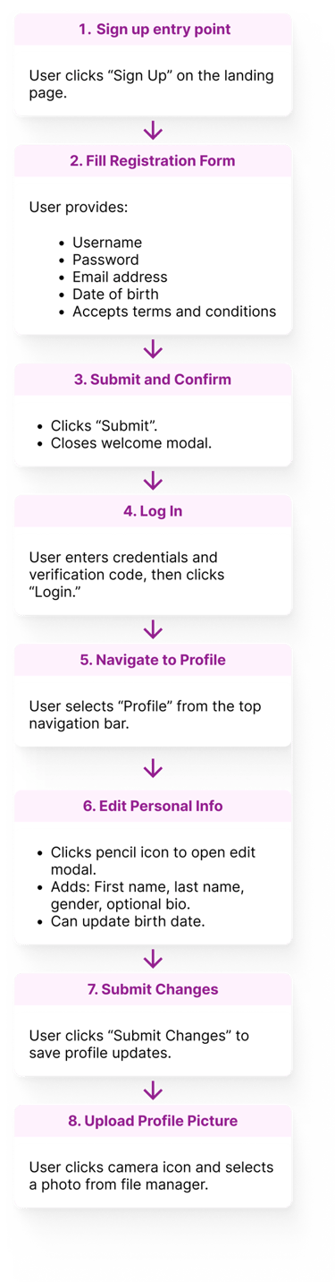 Simplified onboarding using more sign-in options (e.g., Google, Microsoft), clearer feedback, and progressive disclosure to ensure smoother user entry and profile completion—removing redundant steps from the original task flow.
