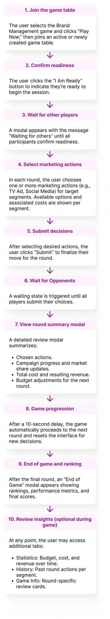 I mapped four core task flows to gain a clear overview of how users navigate the platform and where friction points emerged. The task flow analysis uncovered key usability gaps—such as unclear progress indicators, vague feedback, and missed instructional cues—that disrupted the player experience.