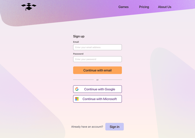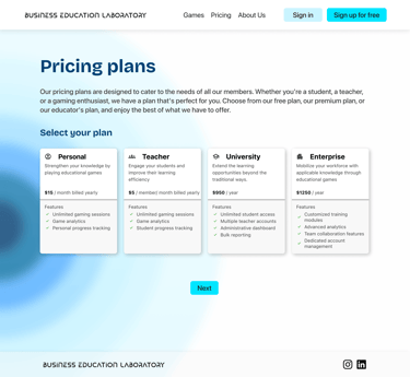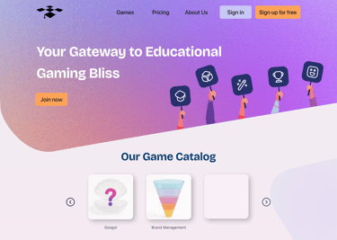Public pages—including the landing, sign-up/sign-in, games overview, pricing, and About Us—were redesigned to feel more vibrant, inviting, and intuitive. A warmer color palette and playful visual elements helped create a more engaging first impression and guided users toward deeper exploration of the platform.
