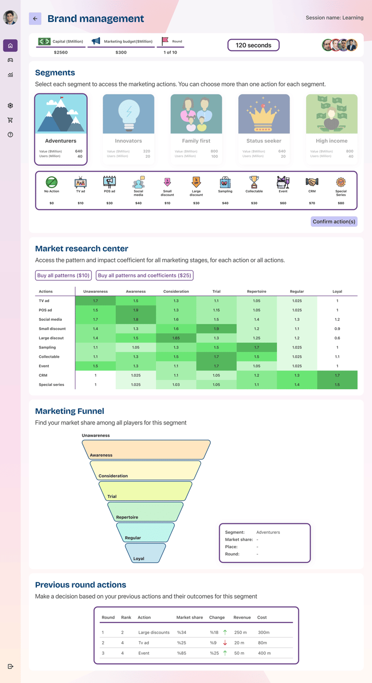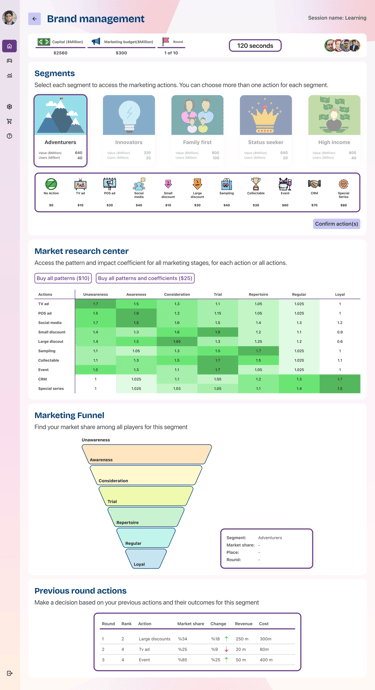 A learning platform currently featuring two interactive web-based games designed to teach operations research and business strategy to higher education students in an engaging classroom environment.