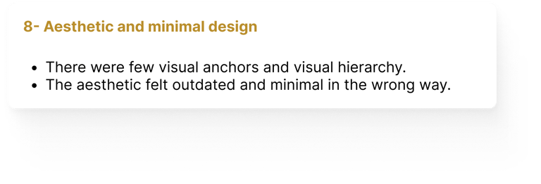 Insufficient Accessibility Considerations – Font size, contrast, and focus indicators did not meet accessibility standards.