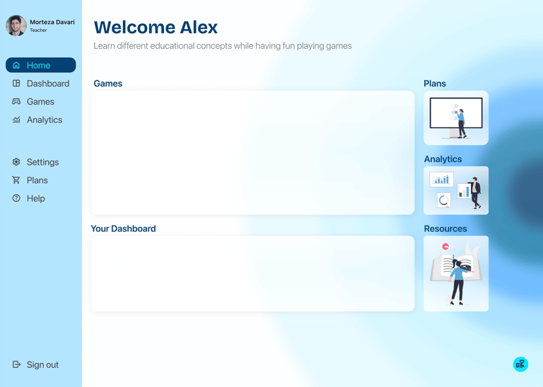 Once signed in, users needed a clear structure to manage their learning journey and move seamlessly between games. This was achieved by introducing a centralized dashboard for each user and a persistent sidebar for simplified navigation. Key improvements included: