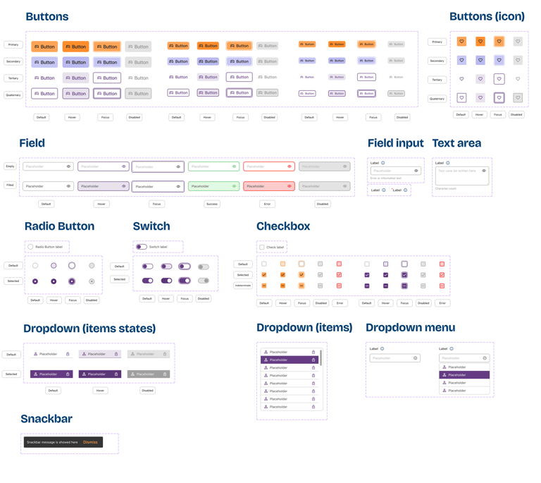 Tokens & Variables: Established foundational values for color, spacing, and typography to simplify global updates and improve maintainability.